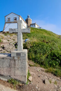Varias cruces blancas nos indican la peligrosidad de estas aguas, aunque no representan a naufragios sino a la desaparición de percebeiros cuando intentaban obtener un producto que en estas rocas tiene fama mundial.